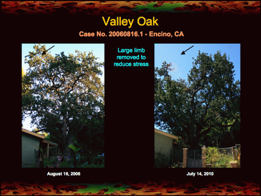Yesterday I visited and tended a huge valley oak which, at about 500 years old, is possibly the oldest valley oak in Encino, CA. This oak appears to have been pollarded (pruned in a way that encourages broad, spreading branches) by the native people hundreds of years ago. Last year I posted a story about this Encino heritage oak, and presented photos that showed a significant improvement in the health of the tree in response to fire mimicry treatments.
