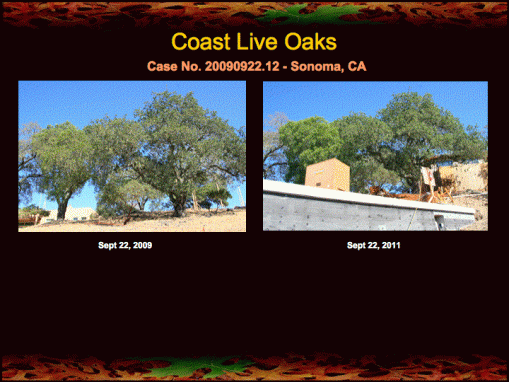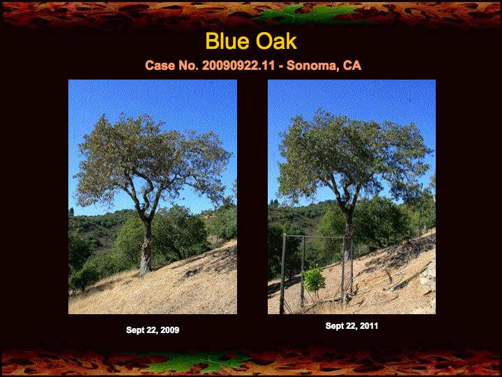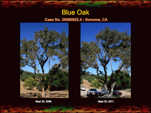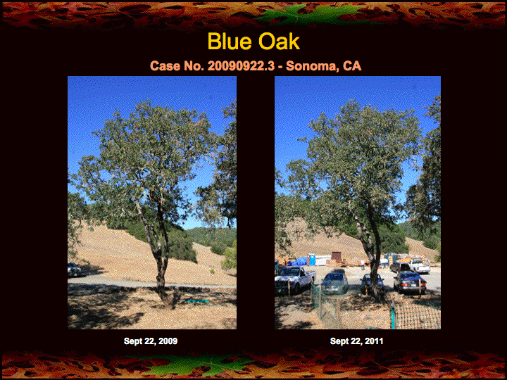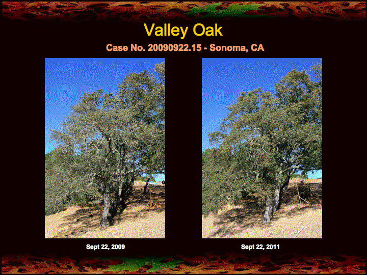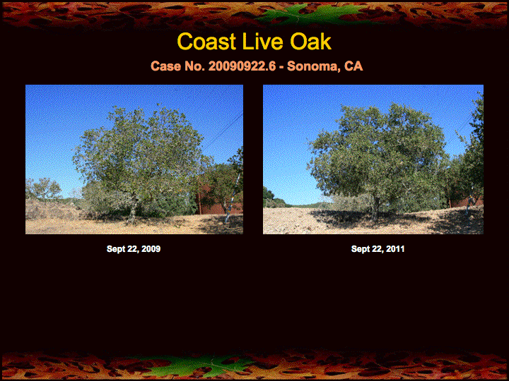 After this work began several of the oaks have since been heavily impacted by some new home construction. Despite this, most of the impacted oaks have shown a noticeable improvement in their health over the two year period. The photos below show the results.