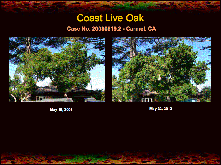 Five years ago I began fire mimicry treatments on these coast live oaks in Carmel, CA. Last week I checked on the oaks and re-photographed them. Here are the results: