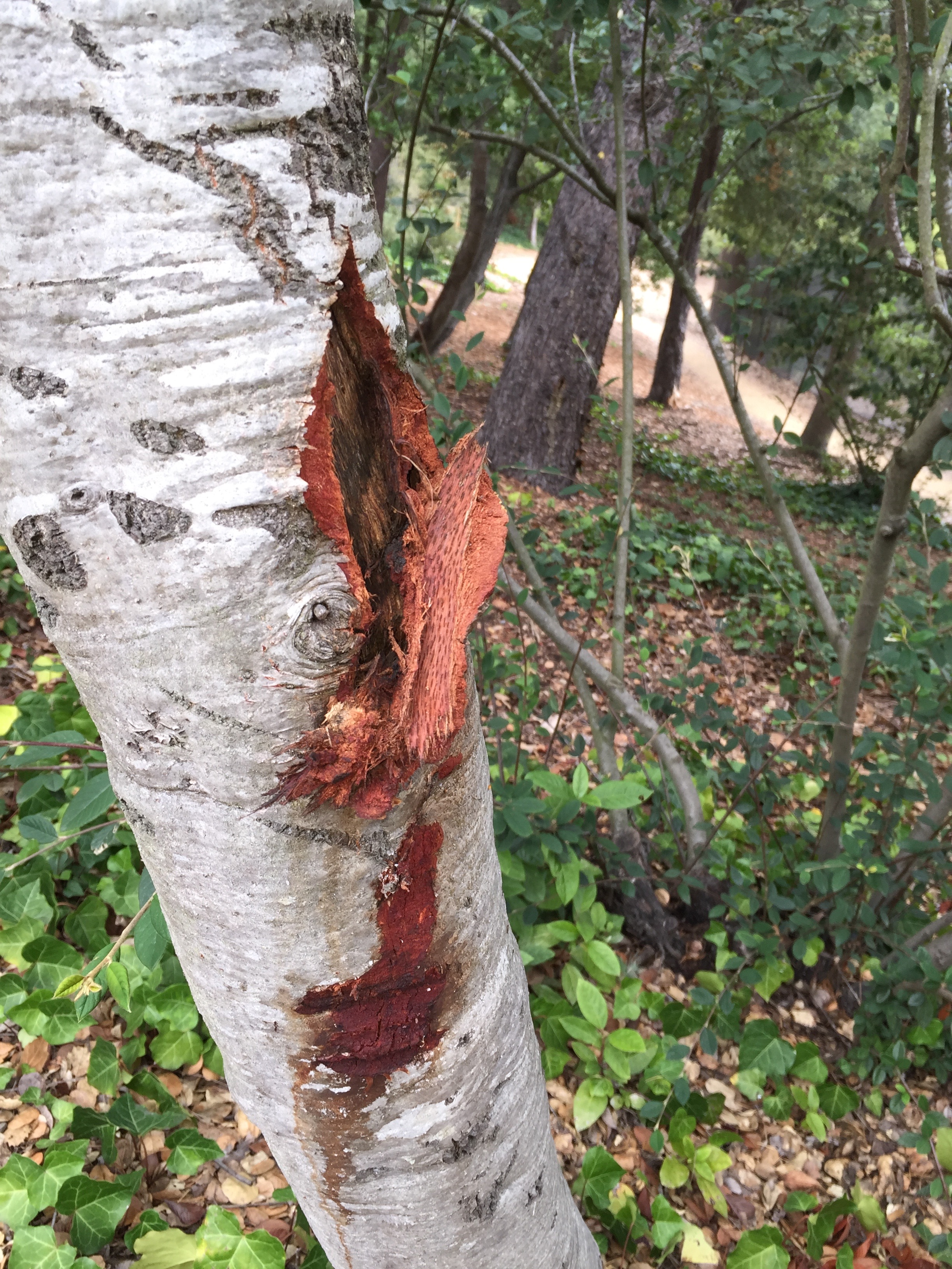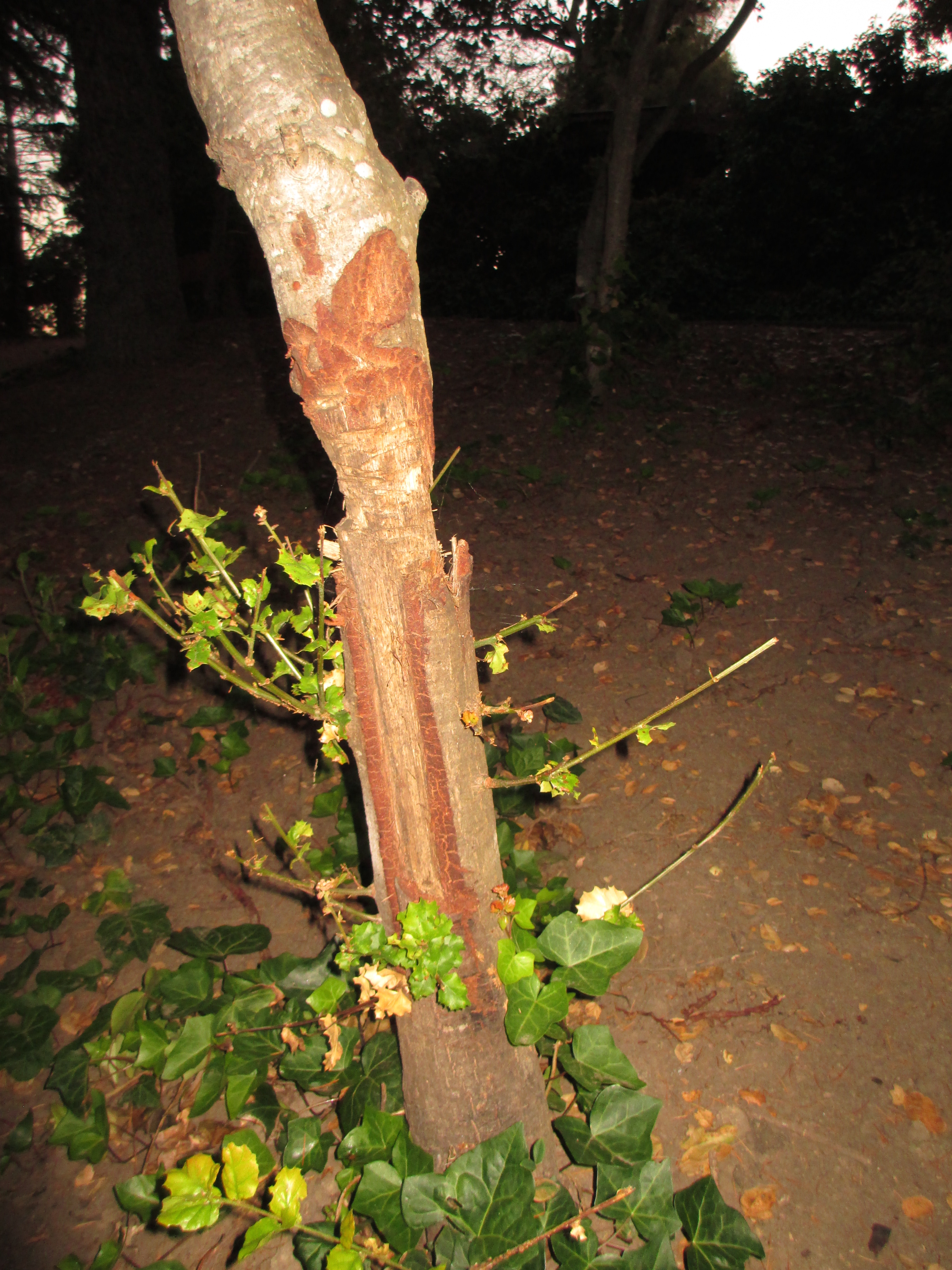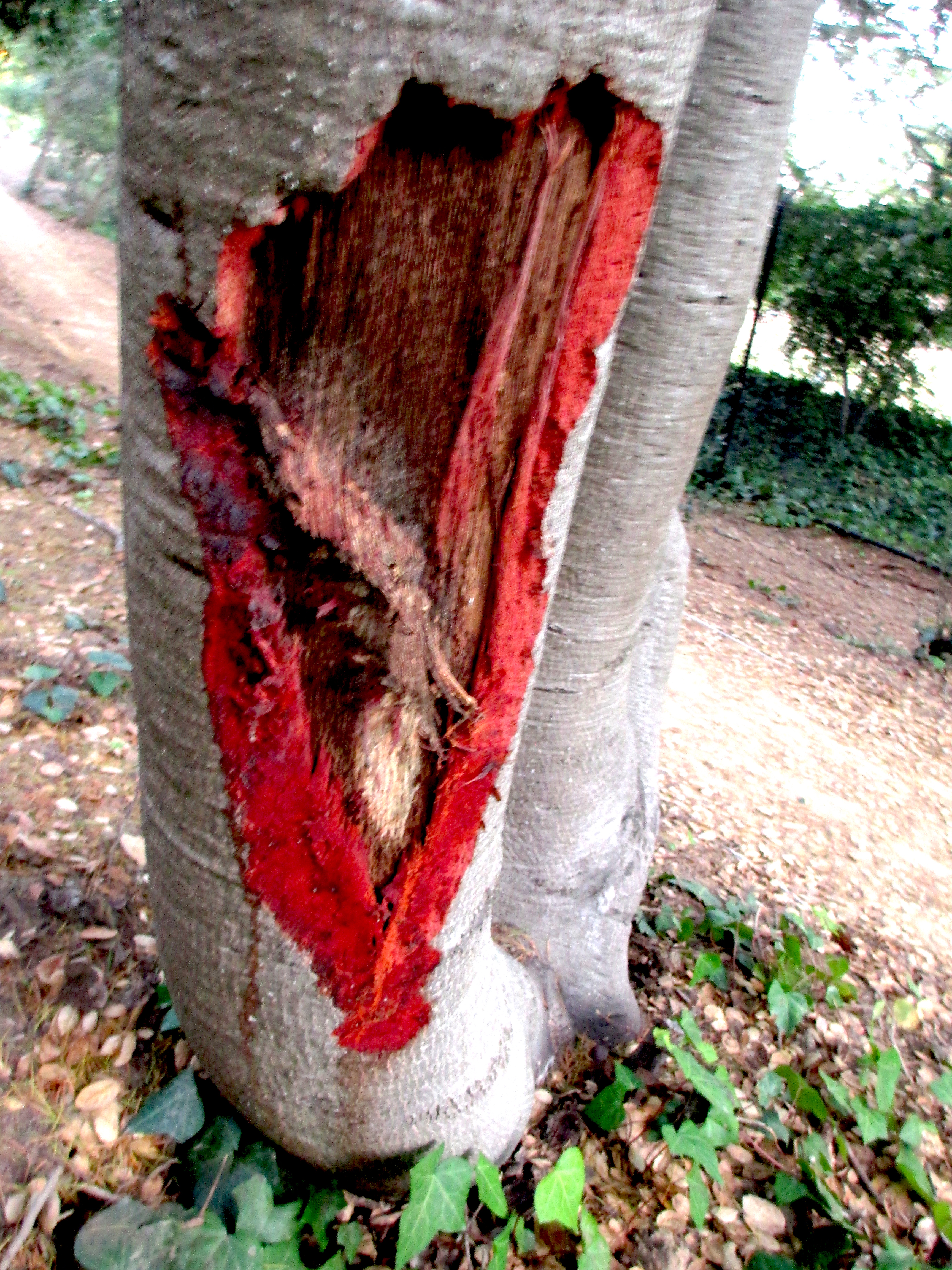 Walking through what remained of the oak grove I quickly noticed wounds on the trunks caused by the workers undertaking the removal of the oaks. That prompted me to inspect more carefully the remaining oaks.