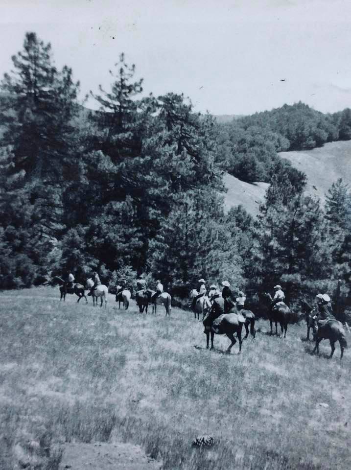 “This is a picture of us on the Pine Ridge Trail 2 miles from China Camp in 1940s. The country was beautiful and balanced. Open meadows and healthy trees. Today there are no trees left here is this spot. There is A bunch of brush only. 4 major wildfires since 1977 Marble Cone Fire that burnt over 177,000 acres. The Most recent was the Soberanes Fire is 2016. Now we have the Dolan Fire. A human started fire that may burn the Northern Ventana Wilderness.”