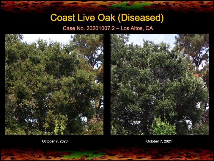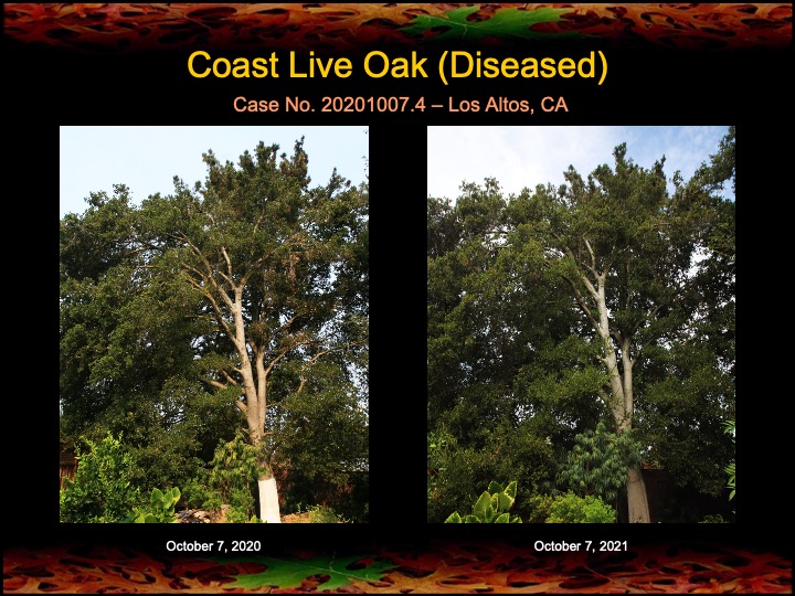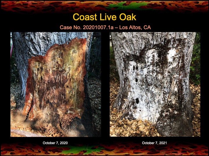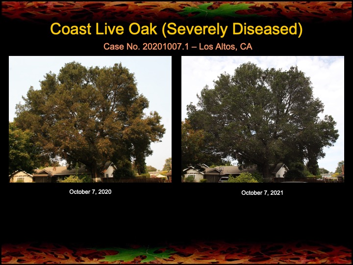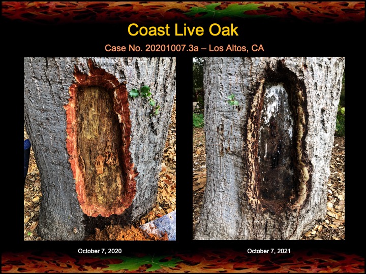 All four oaks are showing noticeable improvement in canopy health (greenness), and the surgeries, for the most part were successful, although there are small residual infections in two of the oaks that need to be treated. Otherwise, I’m calling this a win after just one year! Of course, I will continue to treat and monitor these oaks in future years.