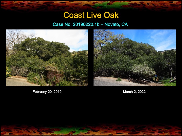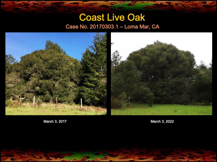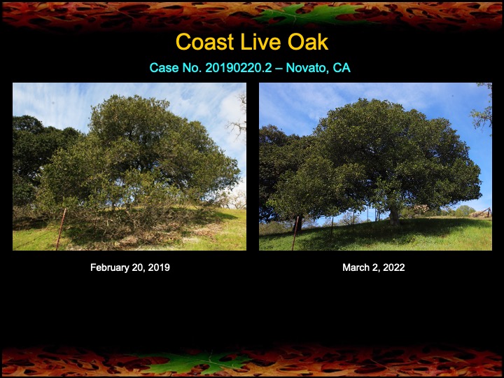 My latest results of coast live oaks before and after fire mimicry treatments.