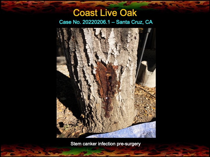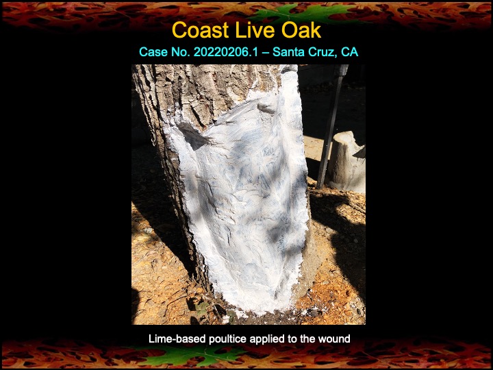 More photos showing a surgery on a stem canker infection in a coast live oak