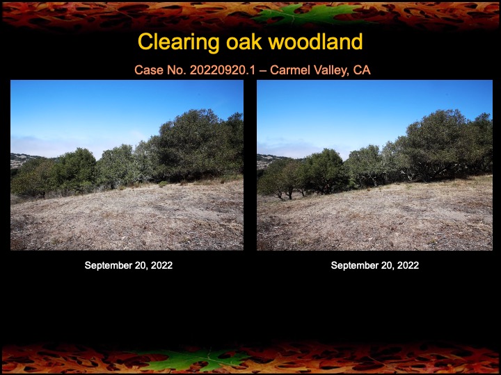 The photos here show several stands of old-growth coast live oaks in Carmel Valley, CA that were cleared, thinned, and pruned in order to reduce the ladder fuels and prepare these sites for future prescribed burns. Time-lapse videos of these and other nearby sites are presented in several recent posts.
