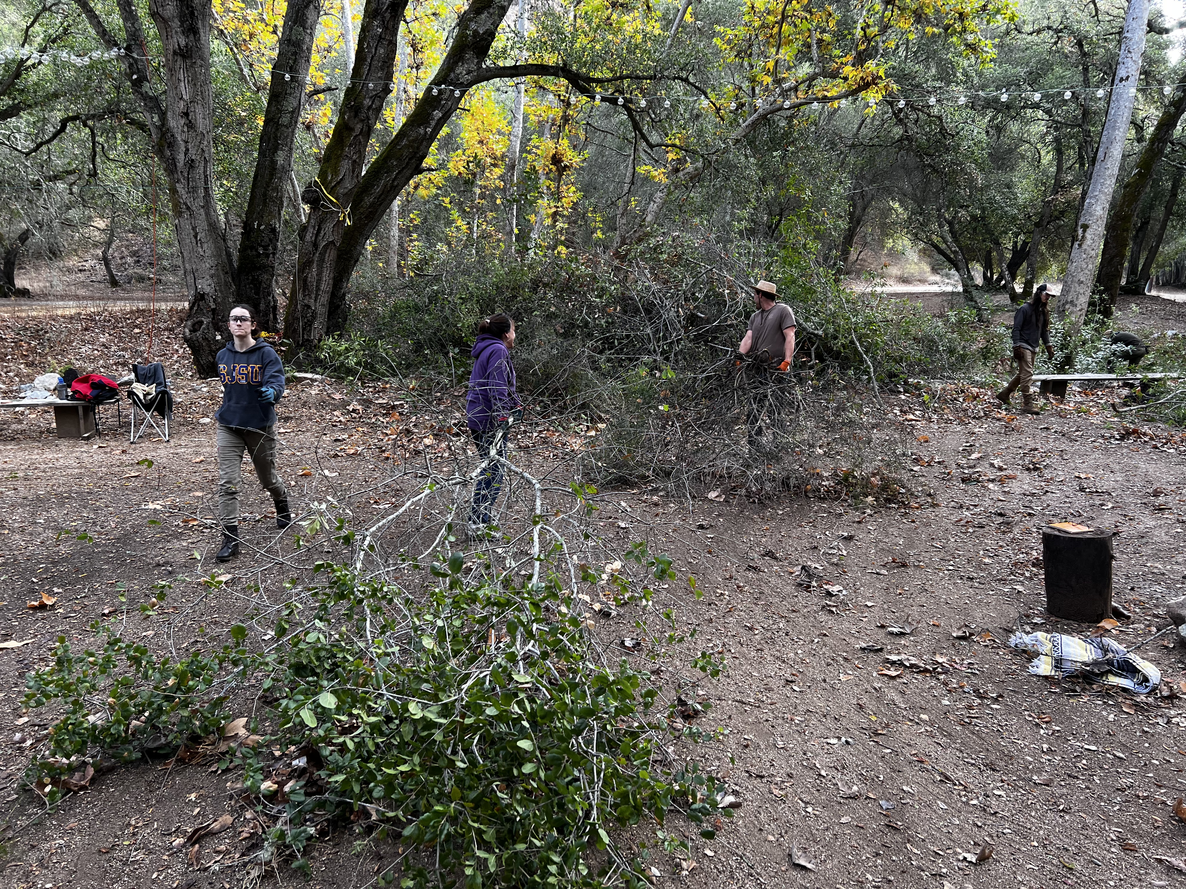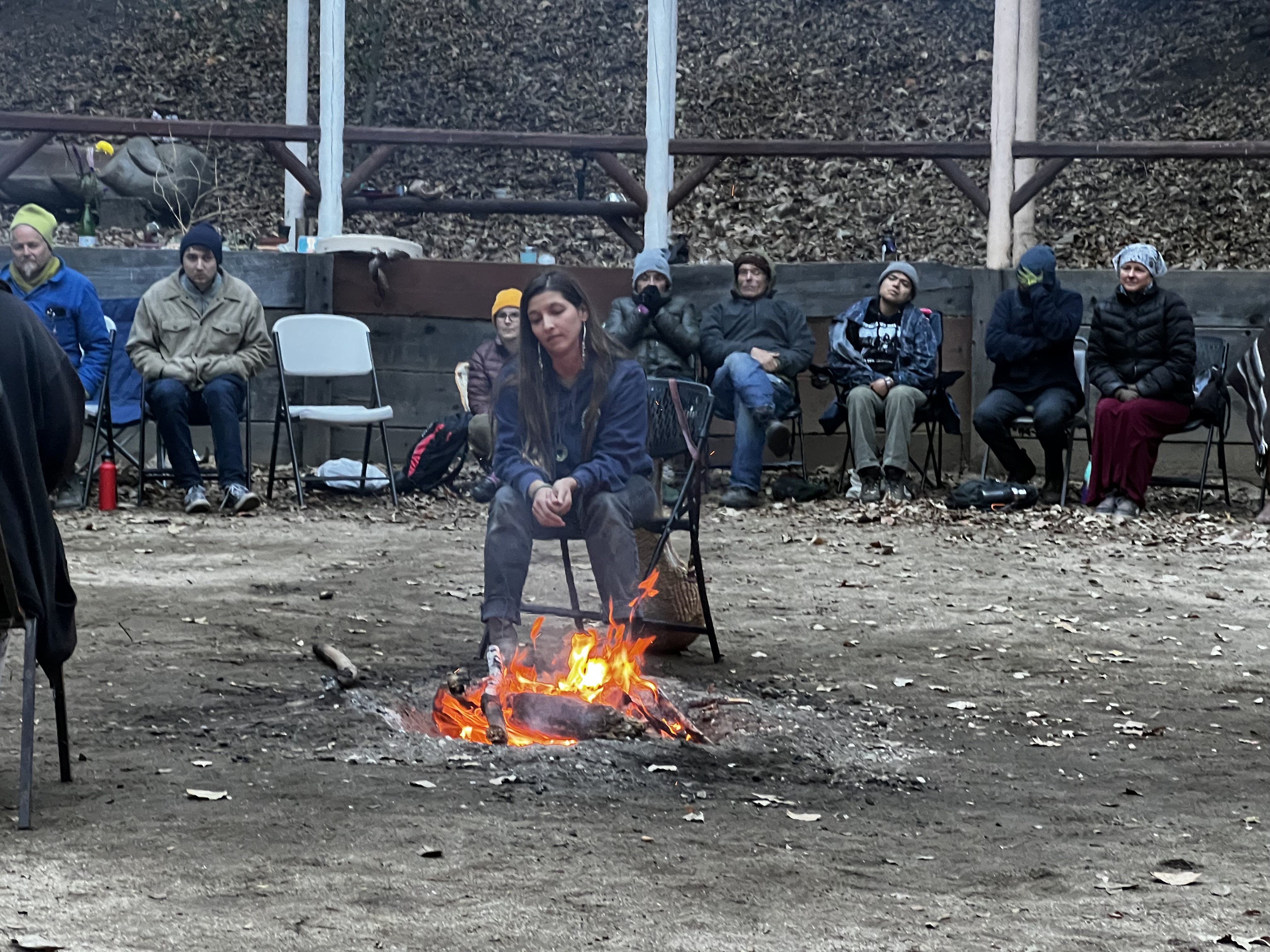Thanks to the fine efforts of EcoCamp Coyote and Indian Canyon Nation this past weekend we attracted more than 70 participants of all genders, ages, and ethnicities for our “Restoring Fire Safe Communities: Fire Mimicry and TEK” workshop at Indian Canyon. Along with my teachings on fire mimicry, we had TEK instruction led by Kanyon Sayers-Roods (Mutsun Ohlone) and Chanel Keller (Esselen Tribe), We were also honored to receive some heartfelt teachings from Anne Freiwald and Lydia Neilsen on methods of stream restoration. Ammon Felix guided us in the basics of chain saw safety and operation. At the end of the workshop, the enthusiasm of the participants for the teachings shared and the futures created were palpable.
