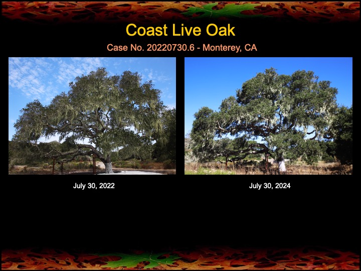 There’s a special place near Monterey that is an oak lover’s dream – over 600 acres of undeveloped, intact old-growth oak forest and savanna, never burned, that I’ve been commissioned to tend. In 2022 I surveyed about 25% of the property and identified over 200 ancient, culturally-modified coast live oaks (“ancestor” oaks) that date from the time when the Rumsen-Ohlone Indians were the sole human occupants of the land (> 300 years old). Every one of these oaks is a living cultural artifact of the Rumsen-Ohlone People. I’m guessing there may be nearly 1000 “ancestor” oaks on the property, many of which are over 500 years old. Thus, I refer to this place as “The Old Oaks Home”.