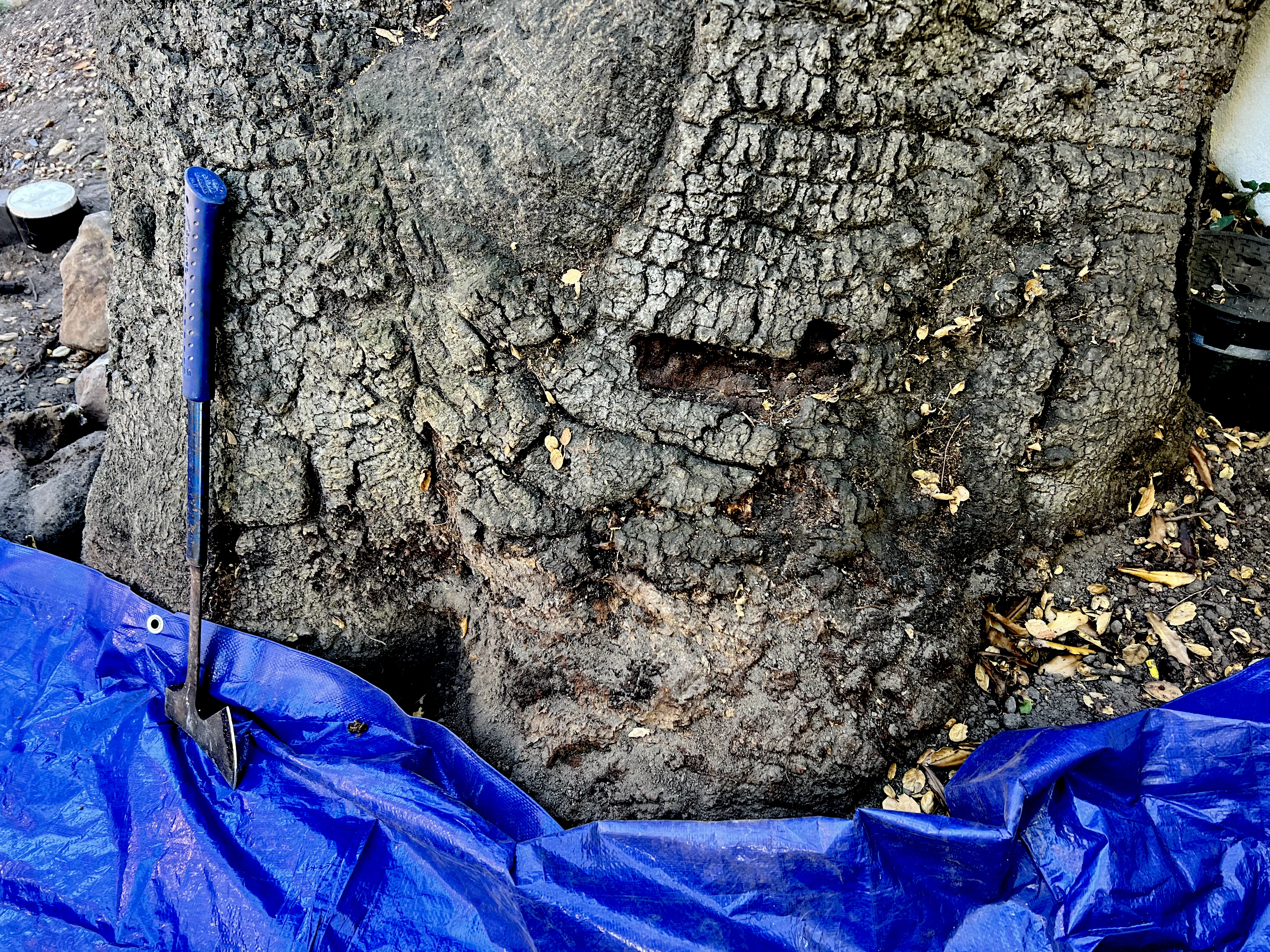 Happy Halloween! Today’s canker surgery on a ghost (coast) live oak gave off a real Halloween vibe. The surgery was gruesome, deep pockets of dark, discolored diseased tissue spreading inside a centuries-old oak. Let me take this grisly opportunity to show how I’ve been able to remove potentially deadly stem canker infections in oaks.