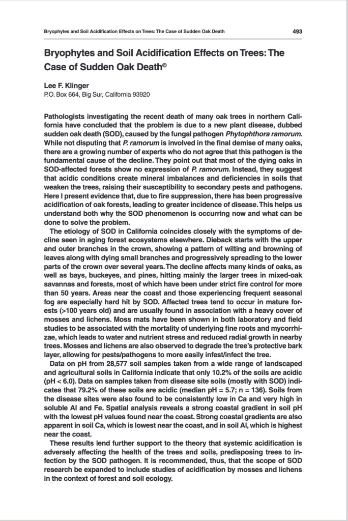 Bryophytes and soil acidification effects on trees: the case of Sudden Oak Death